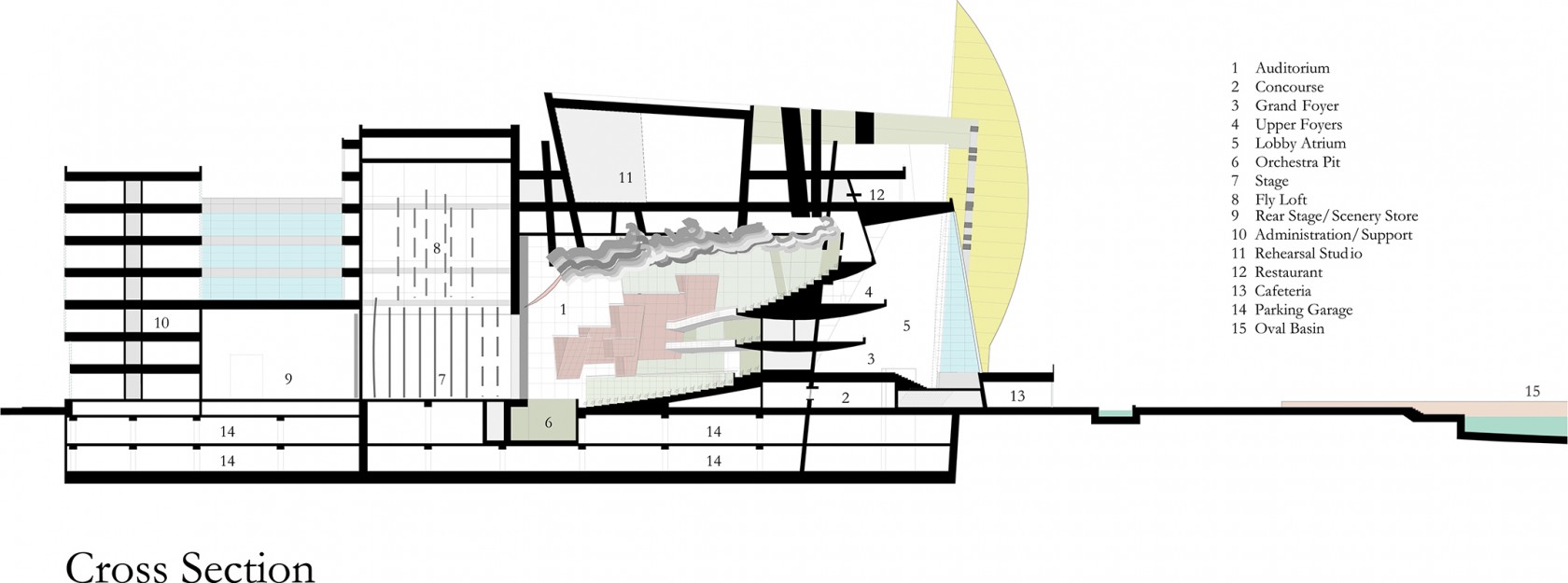 Opera is a production bigger, greater, richer and more dramatic than life itself. But in spite of its larger than life aspect the opera is rooted in the real world. The Opera House, as a structure built to contain this drama, must relate to opera as man relates to nature.
