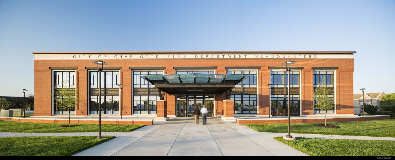 The City of Charlotte Fire Department runs an exemplary operation as a most progressive and modern fire service and harbors a strong respect and institutional memory for its past. The timeless expression of dignity, tradition and history of the 170 year old department were foremost attributes to be captured and reflected in the new headquarters design. With close collaboration among the designers, Fire Department Command Staff and City of Charlotte project management, the design process began with a period of interviews and detailed programming to explore the functional and spatial needs of the administrative departments to be collocated. Project design evolved through an intensive conceptual phase then careful and exploring design development; culminating with production of a most thorough package of drawings and specifications in preparation for a construction contract award to the lowest bidder.